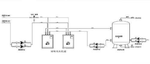 綠特中央熱水機組的優(yōu)點之一就是在中央熱水機組內(nèi)部直接進行換熱,不用在中央熱水機組外另加裝換熱器。這樣的結(jié)構(gòu)設(shè)計使得綠特中央熱水機組的供熱系統(tǒng)比常規(guī)中央熱水機組簡單。并且綠特中央熱水機組可以內(nèi)里多組換熱器.每組換熱器能設(shè)置不同的溫度的壓力的熱水出水,這樣就能一合中央熱水機組同時實現(xiàn)采暇和衛(wèi)生熱水兩用。